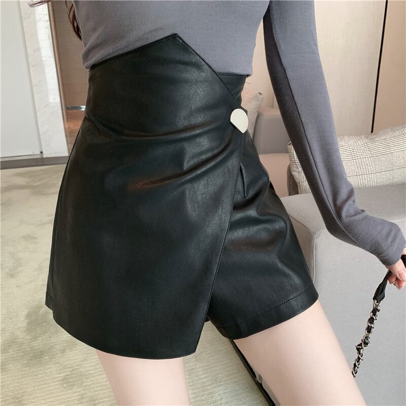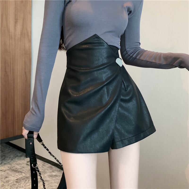 ウェスト薄手ブラックカジュアルパンツ オータムスカート レザーショーツ 秋物 ブルマー ガールズファッション88392826741