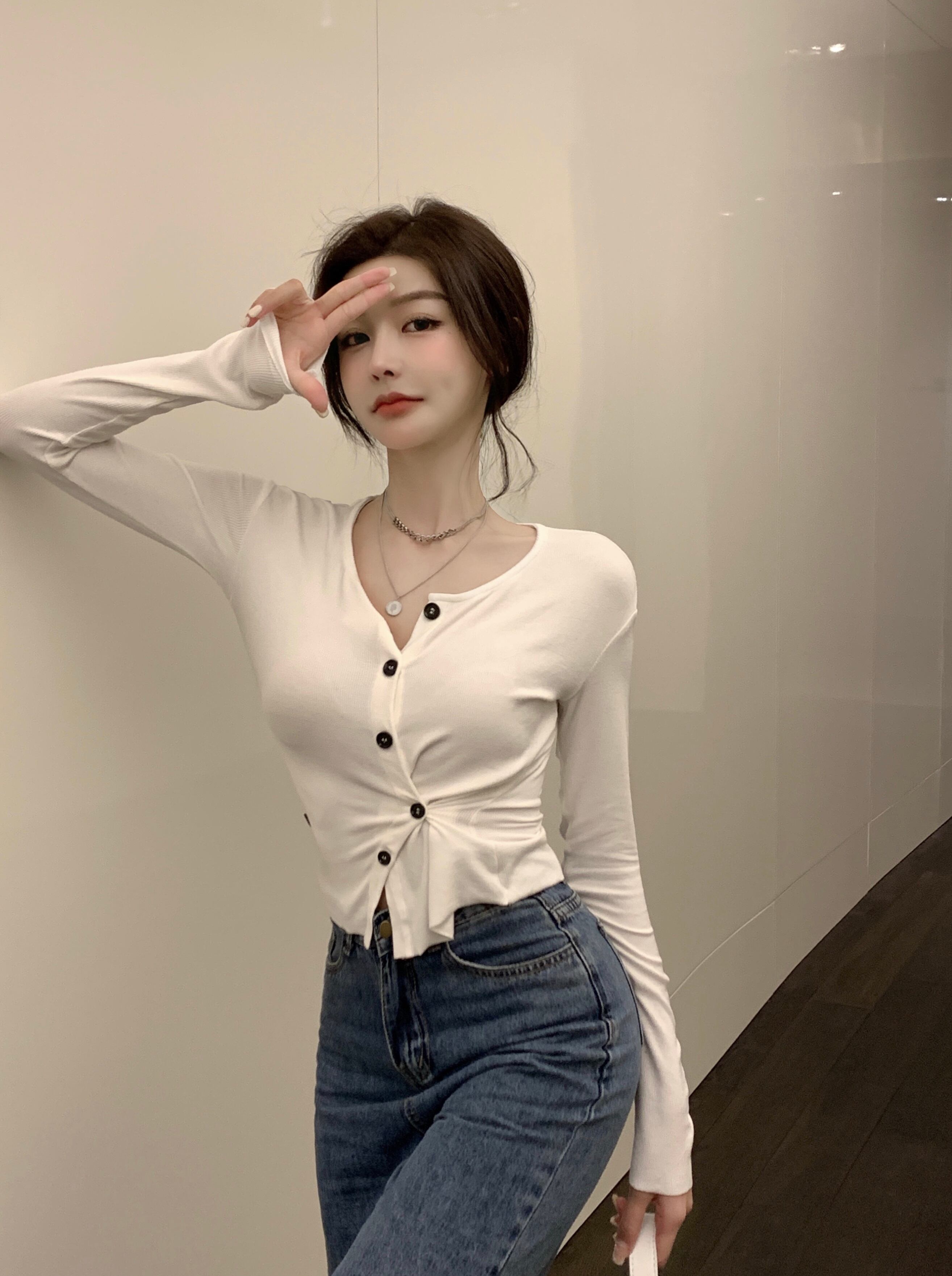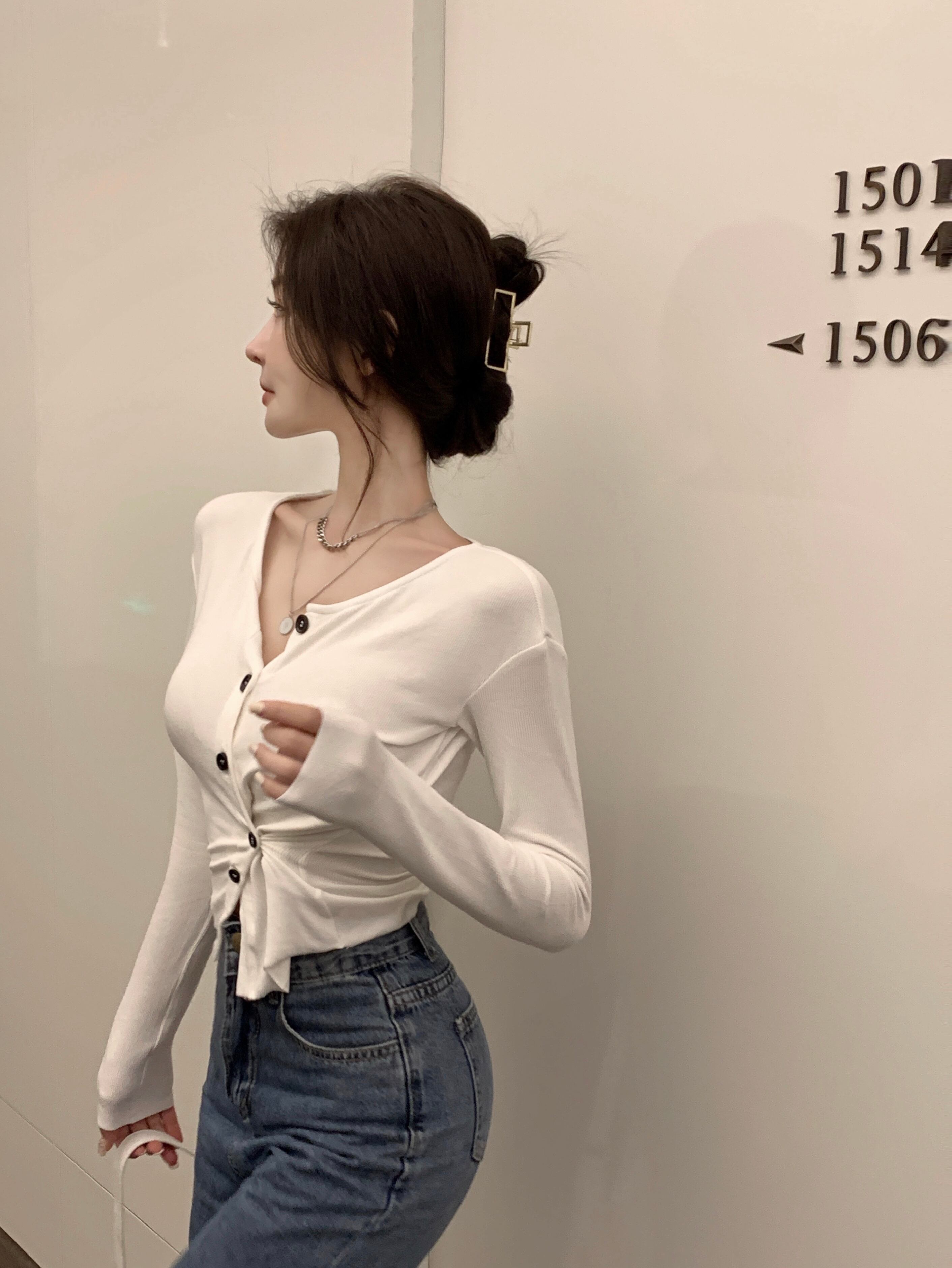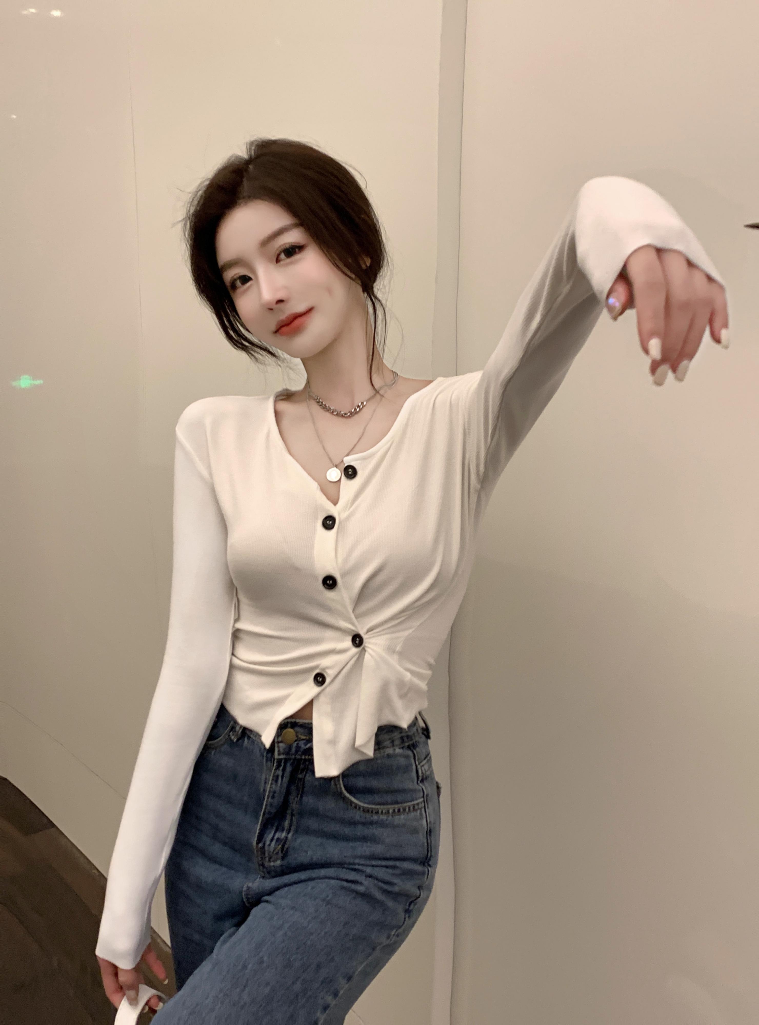 ブラウス セーター オータムカジュアルVネックホワイトシャツ ロング 秋物 ガールズファッション43966264628