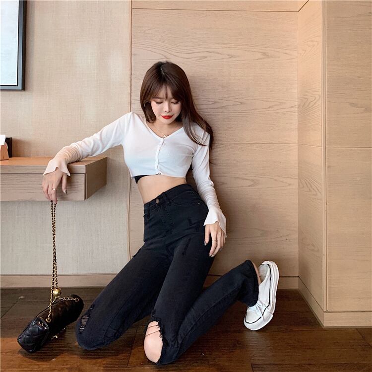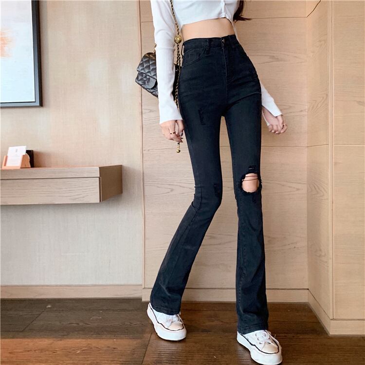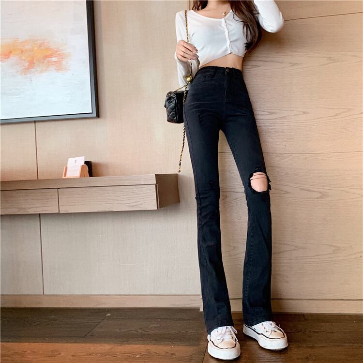 パンツ オータムブラックハイウェストジーンズ 薄手レディース 秋物 ガールズファッション32611217603