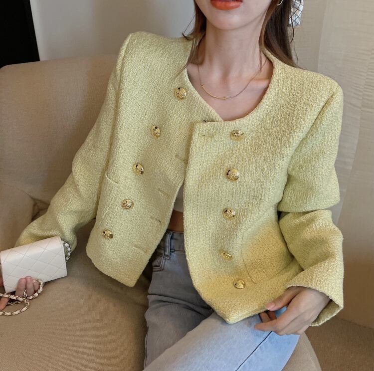 オータムツィードダブルブレストジャケット ショートトップス 秋物 ガールズファッション64509313397