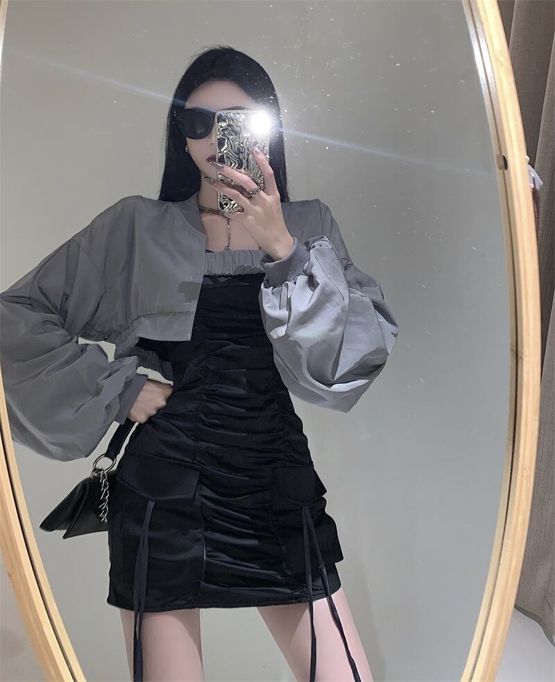 シャツ オータムスタイルプリーツスリムスカート 薄手トップス ロング 秋物 ガールズファッション81941953762