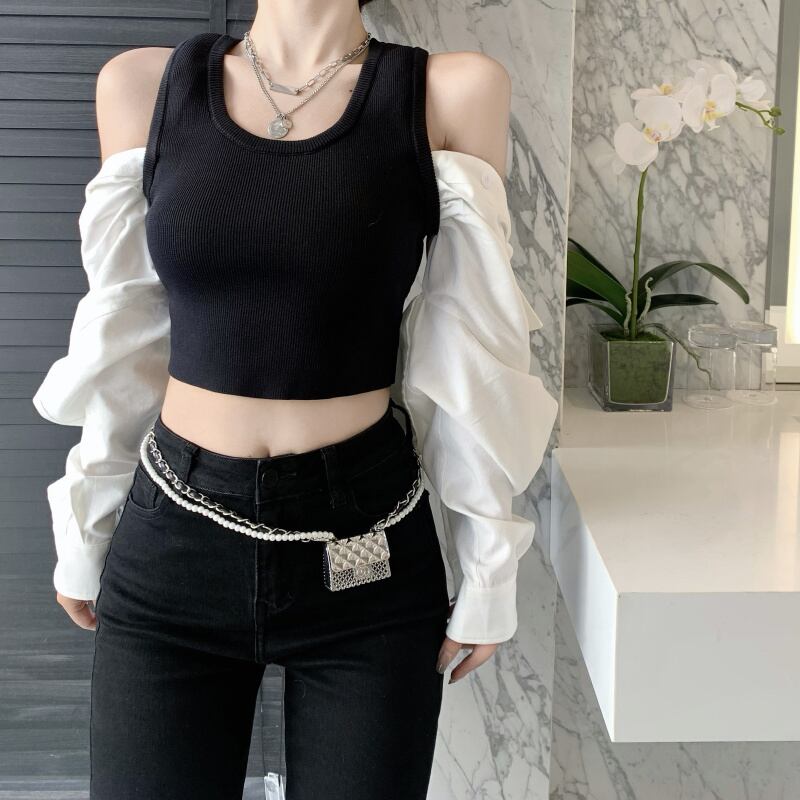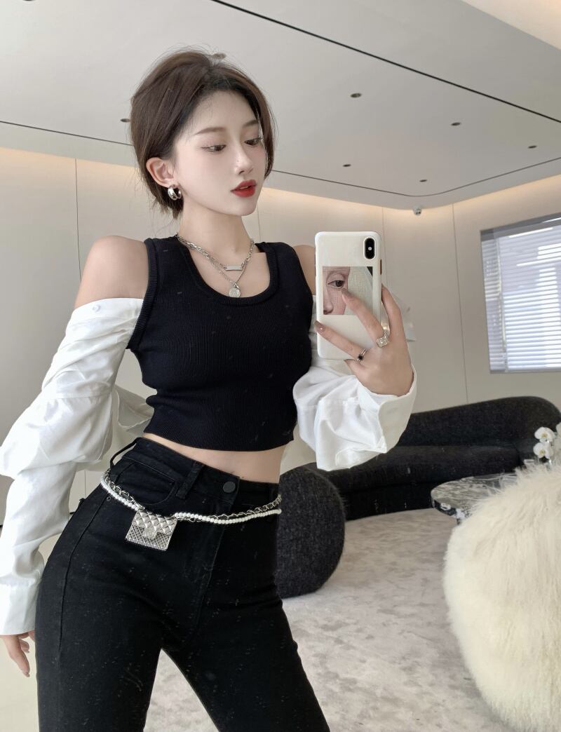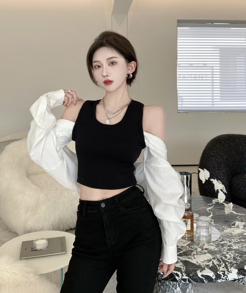 ニットシャツ ブラウス オータムスタイルショートプルオーバー ロング 秋物 ガールズファッション66537127907