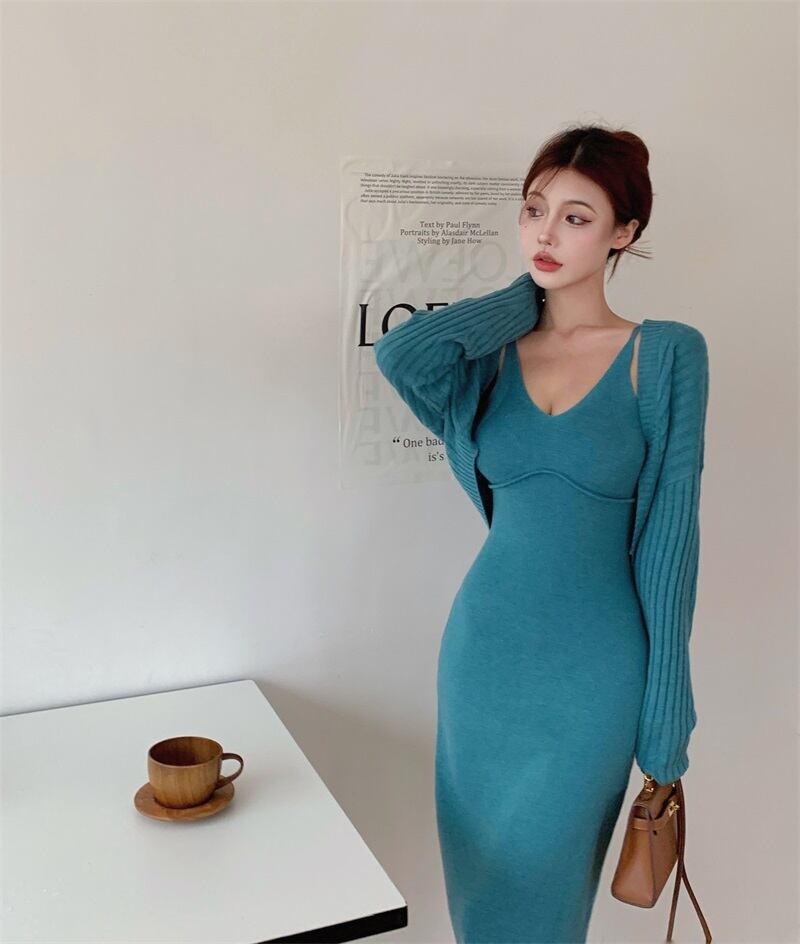 Vネックスリムニットスカート レッドオータムショートカーディガン ストリート 秋物 ガールズファッション45845700761