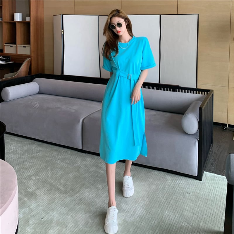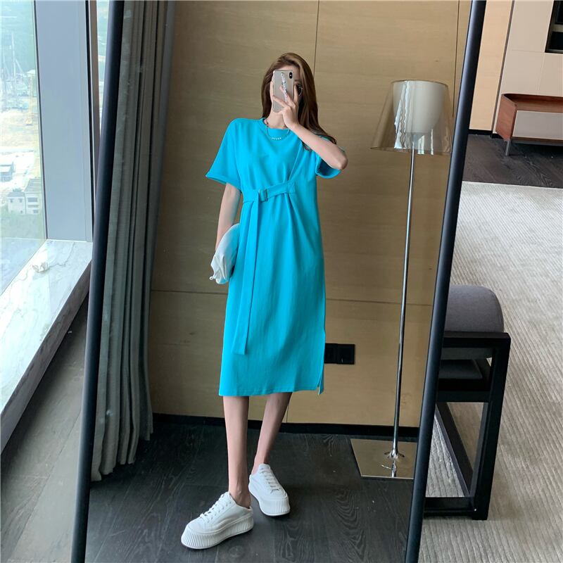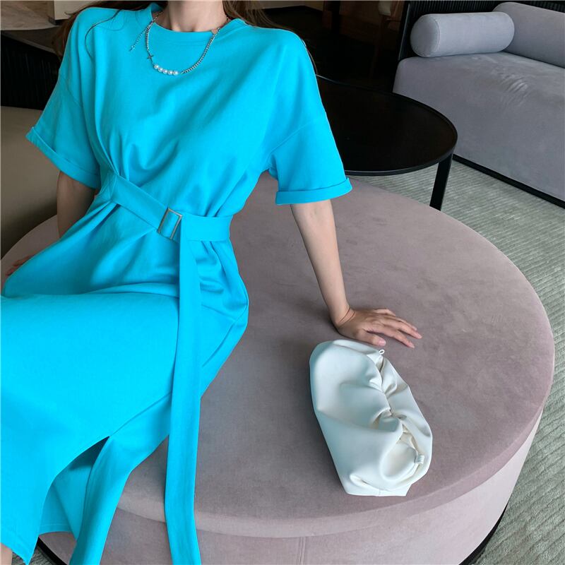 サマーカジュアルルーズドレス スタンダードラウンドネックウェストスカート レトロ 夏物 Oネック ガールズファッション17825965036