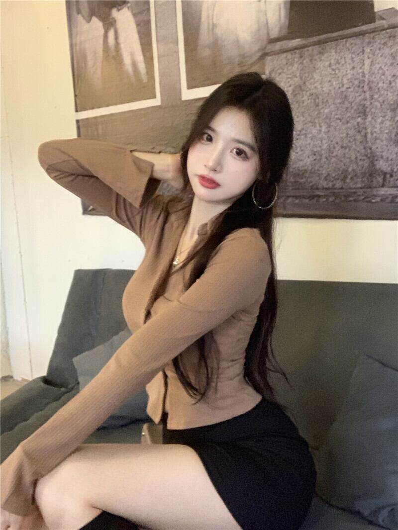 ニットカーディガンオータムカラースリム長袖スリーブセーター トップス ロング 秋物 ガールズファッション73568885659