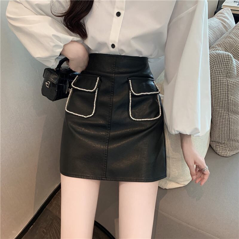 ウェストAラインホワイトスカート オータムスリムショートレザー 秋物 ガールズファッション47648207564