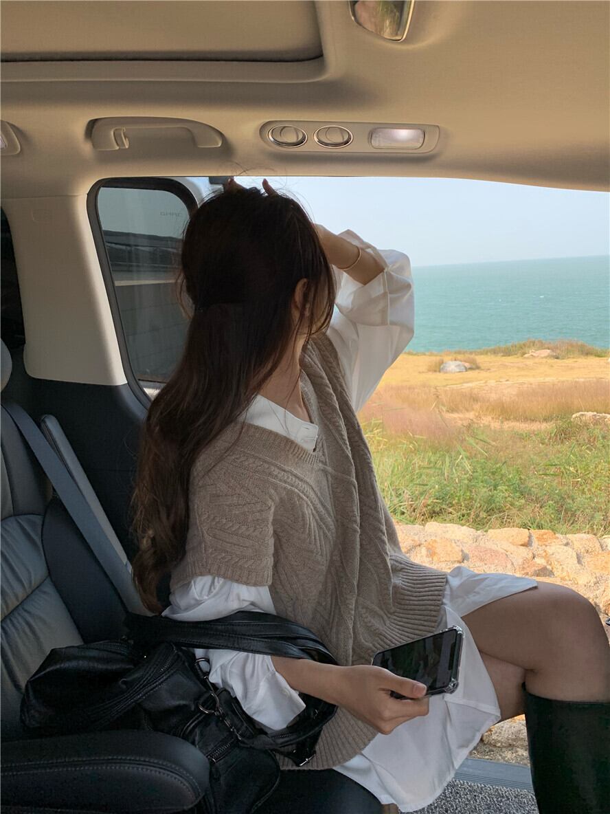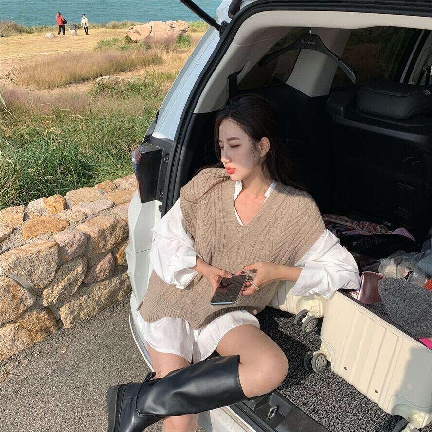 カーキニットジャケット ルーズVネックオータムスタンダード レトロ 秋物 ガールズファッション65556829364