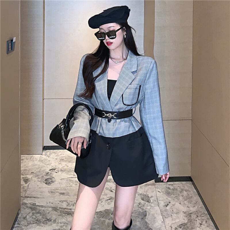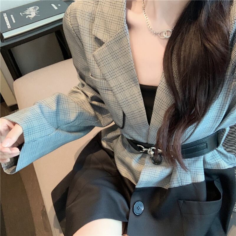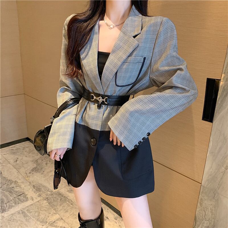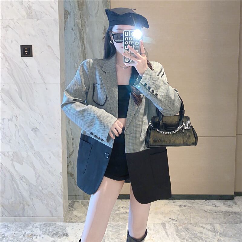 格子柄ジャケット オータムルーズ ロング 秋物 ステッチ ガールズファッション1592888076
