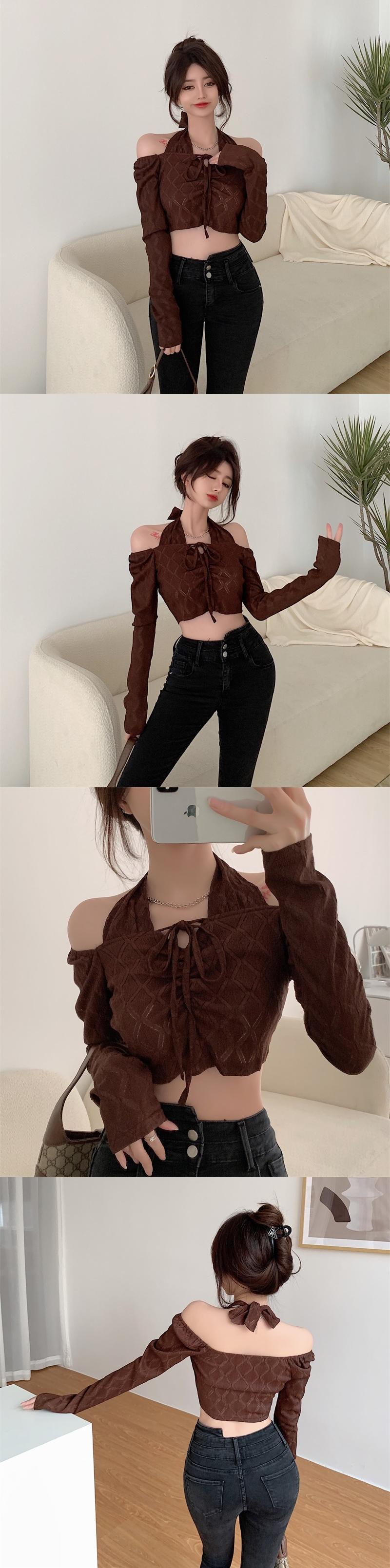 ショートホワイトブラウス オータムレッドシャツ ロング 秋物 オフショルダー ガールズファッション47633338720