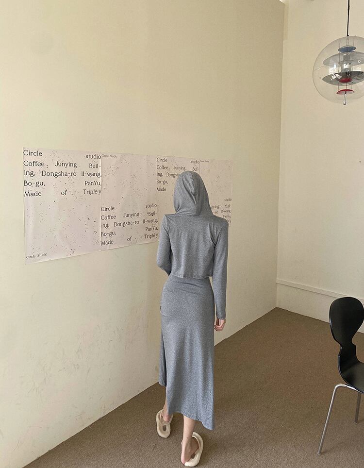 スリットスカート オータムグレーフードカーディガンドレス ロング 秋物 ガールズファッション40979375945
