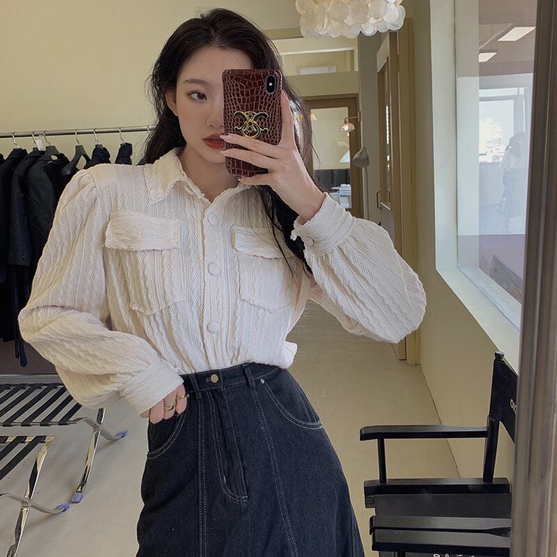 スタンダードカラーニットカーディガンシャツ オータムスタイルルーズ薄手 ロング レトロ 秋物 ガールズファッション61579274095