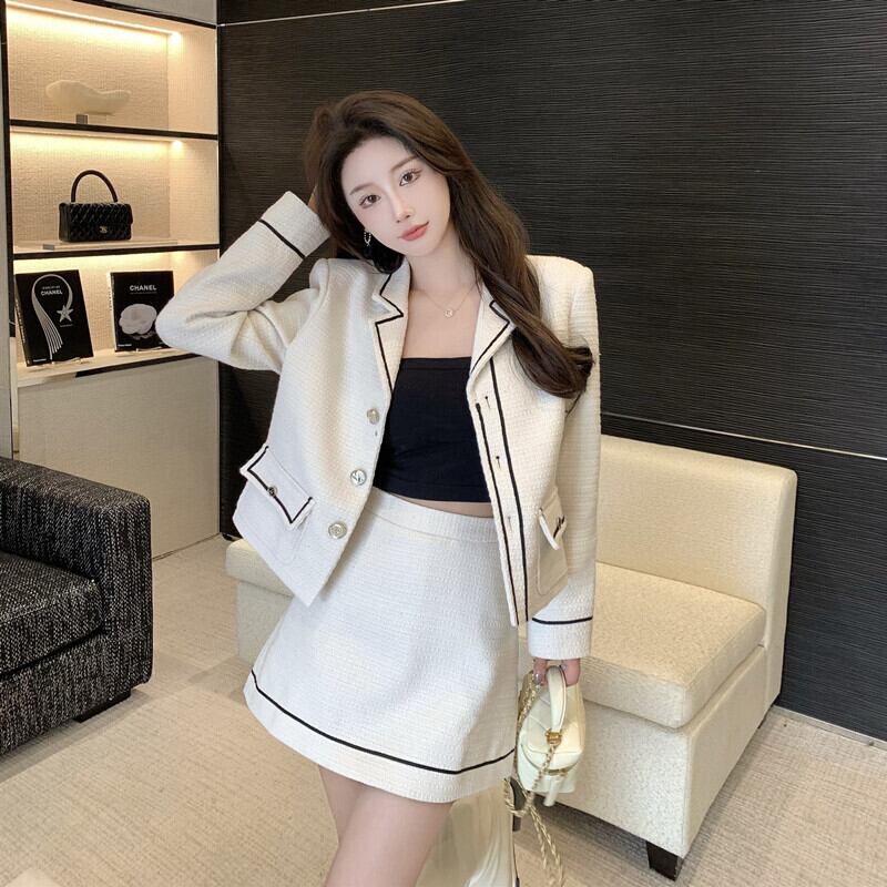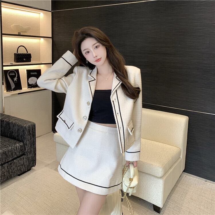 色:黒いジャケット,黒スカート,白いコート,白いスカート