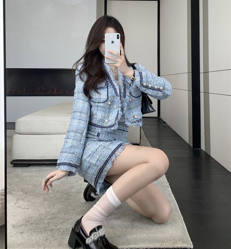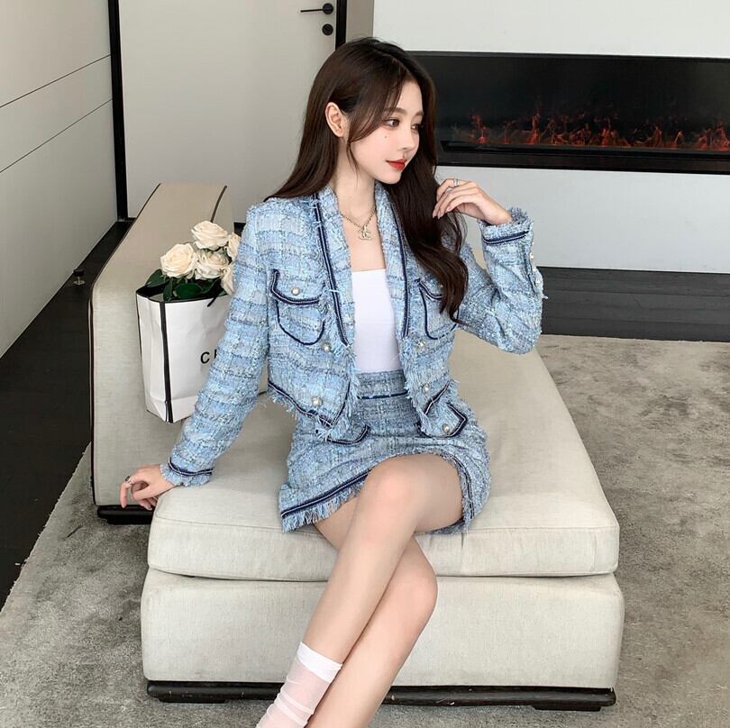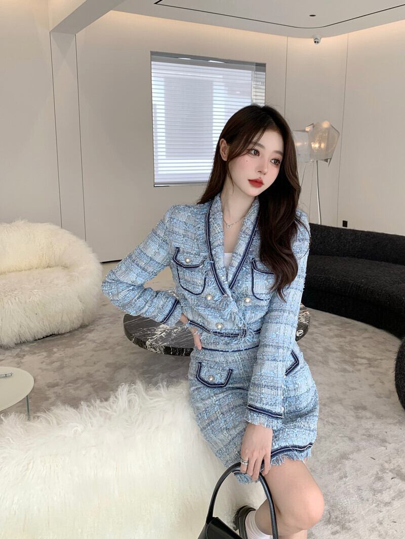 スタイルスタンダードブルーショートコート スカート オータムトップス ロング レトロ 秋物 ガールズファッション73671243639