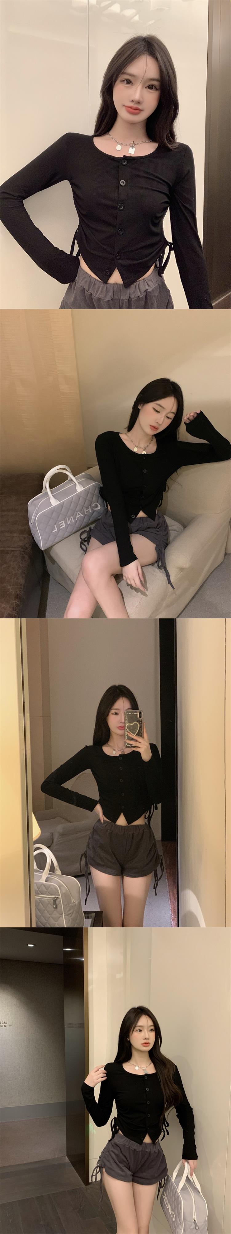ギャザーレースショートTシャツ オータムスタイルスリムラウンドネックトップス ロング 秋物 Oネック ガールズファッション26046486514