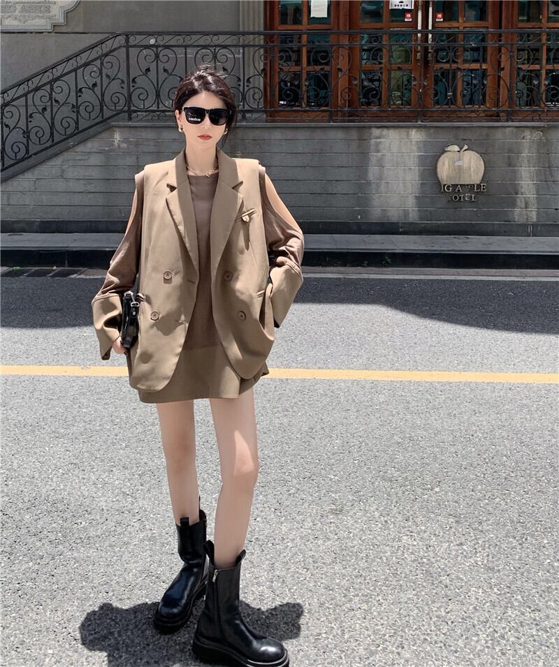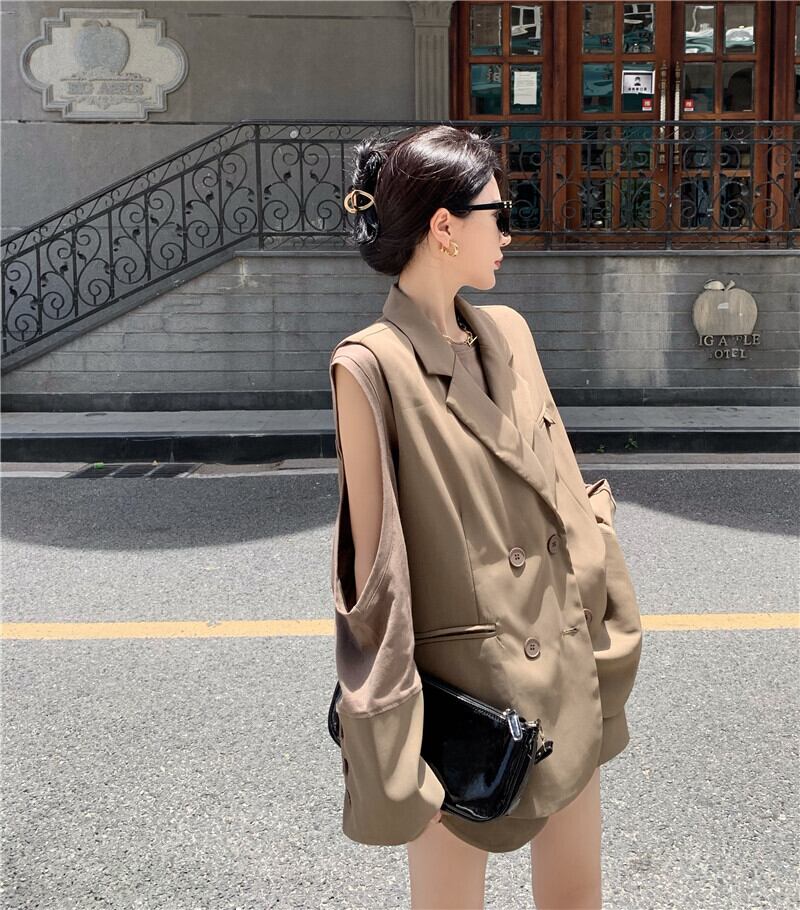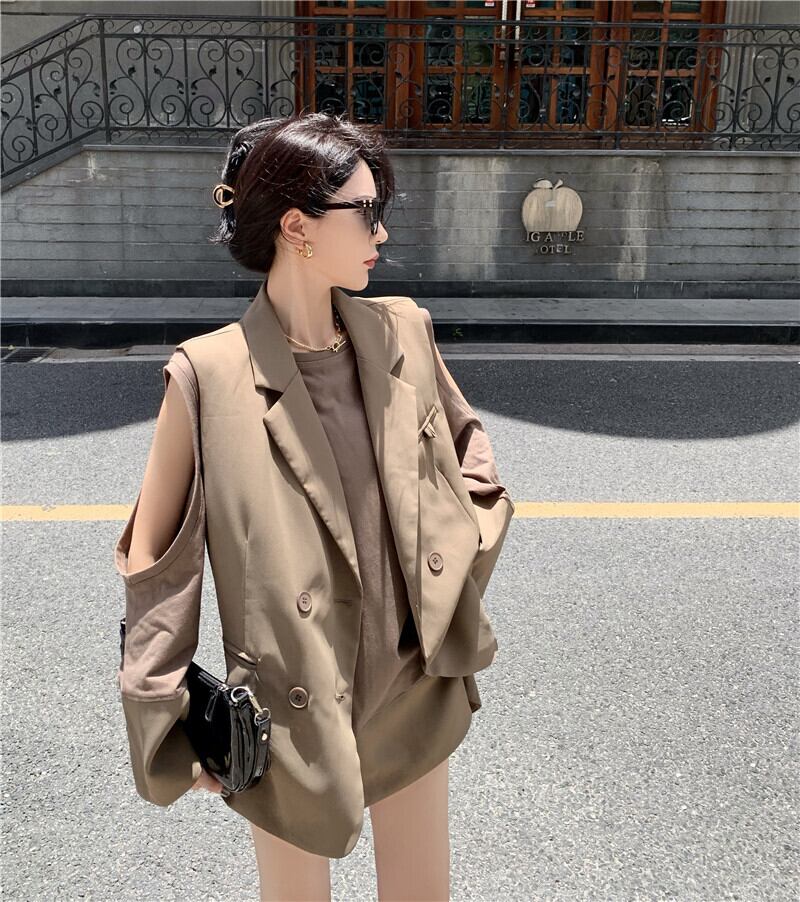 オータムノースリーブジャケット ストラップレスシャツ 秋物 ガールズファッション60147105305