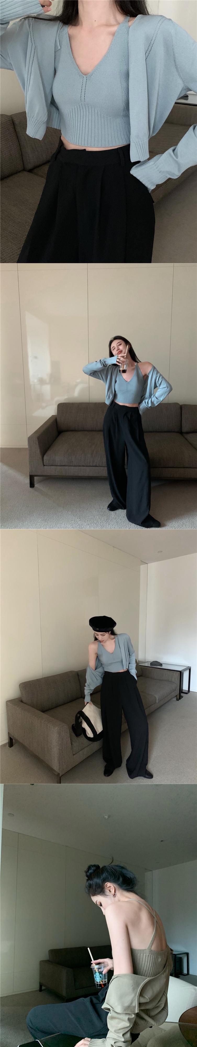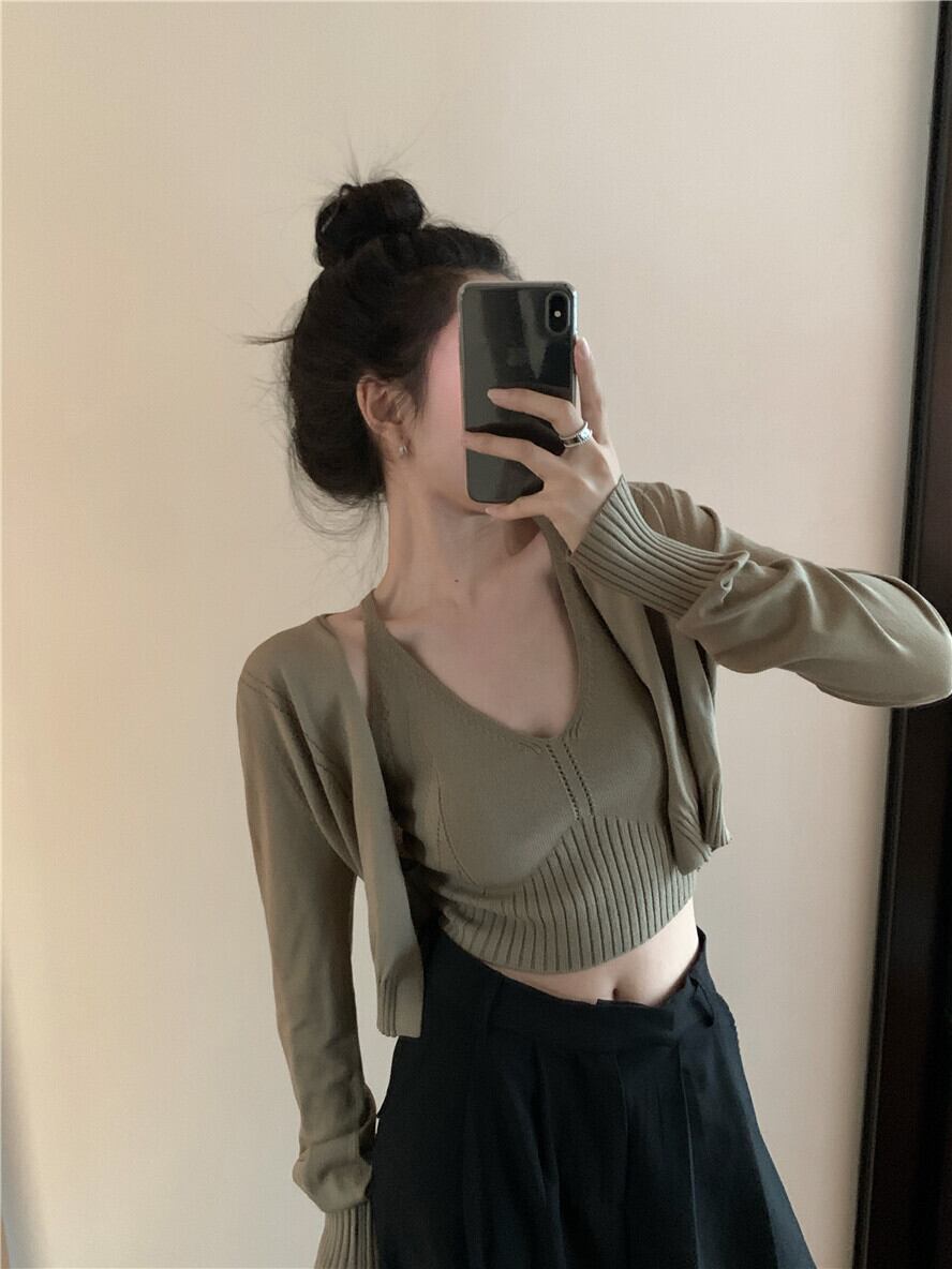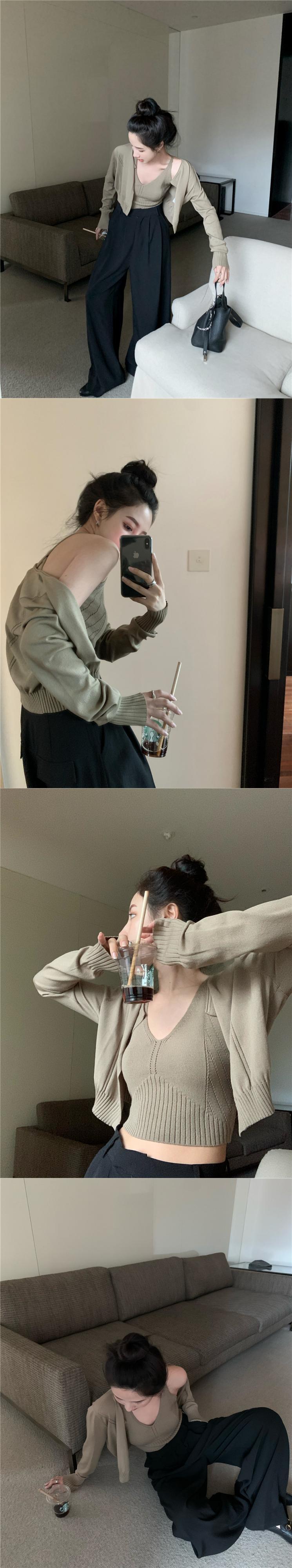 オータムレッドホルターショートニットカーディガンセット 秋物 ガールズファッション68517269924