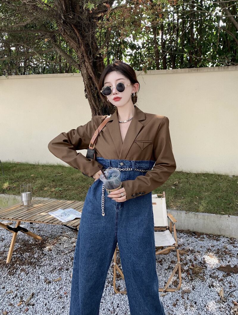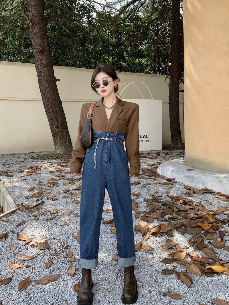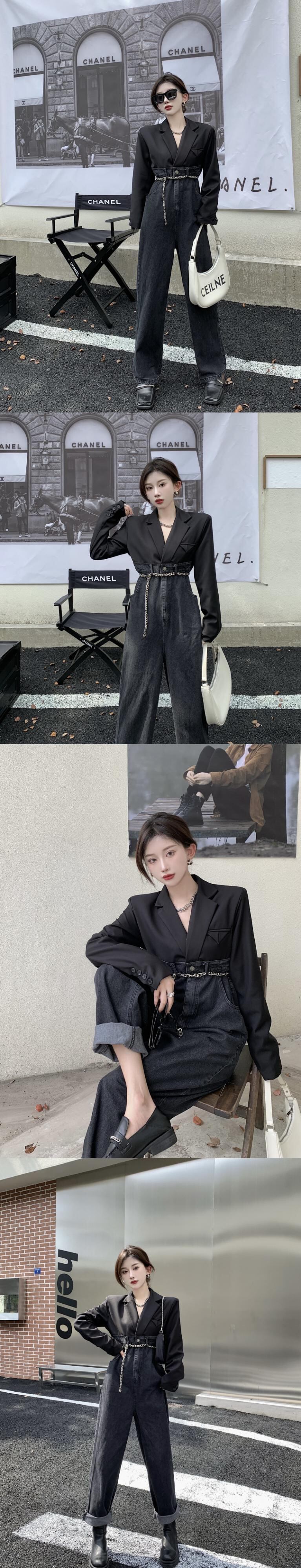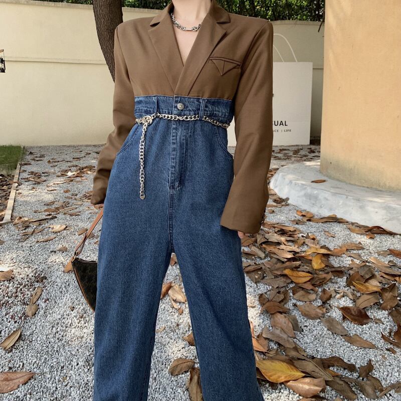 スタイルジャンプスーツ オールインワン オータムハイウェストウェスト 秋物 ステッチ ガールズファッション31543167740