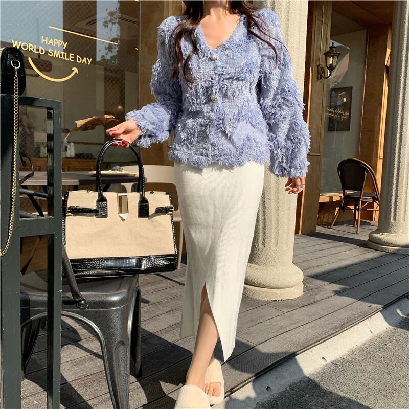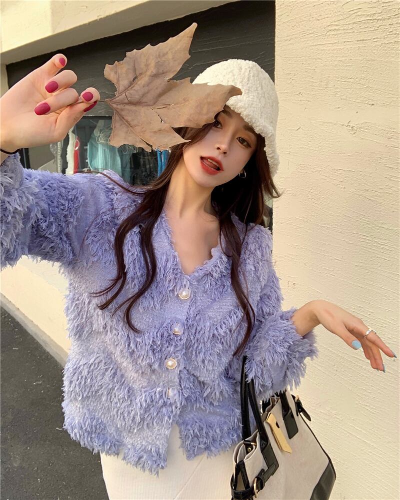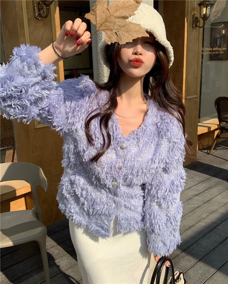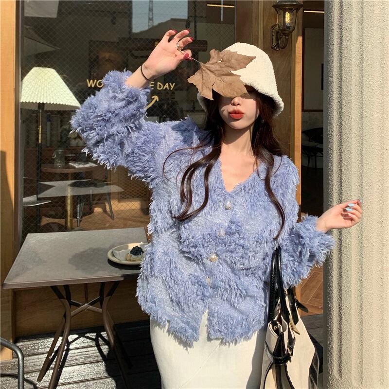 Vネックカーディガンショートコート オータムカラールーズ薄手トップス ロング 秋物 ピュア ステッチ ガールズファッション10312080026