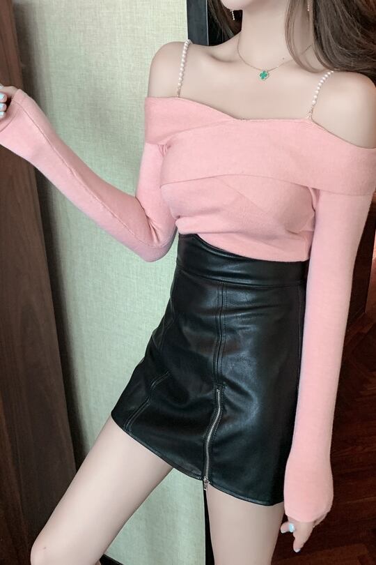 ニットシャツ ハイウェストウェストスカート Aライン オフショルダー ガールズファッション10634794031