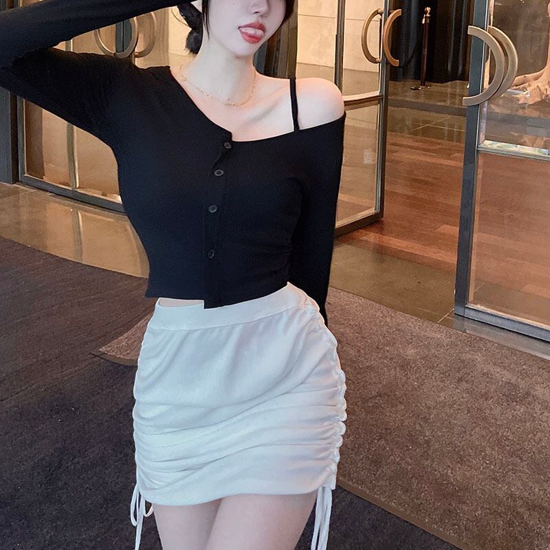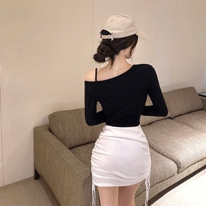 ストラップレススリムホワイトTシャツ オータムブラウス 秋物 ピュア ガールズファッション18985212935