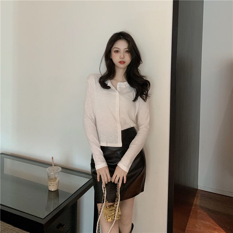 ホワイトシャツ オータムTシャツ トップス ロング 秋物 ガールズファッション80012868536