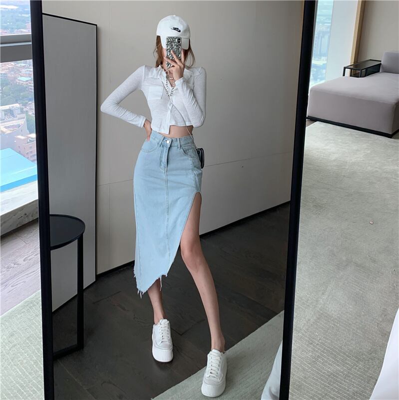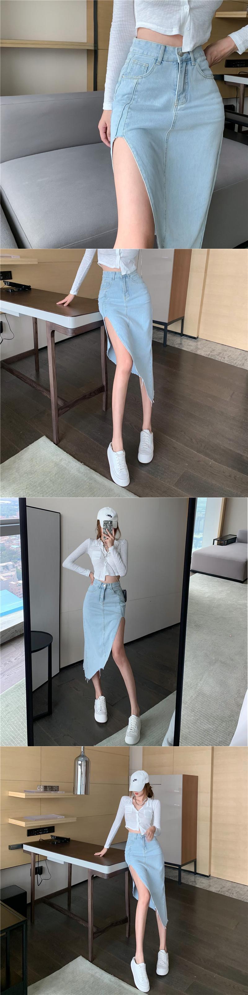 スリットスカート サマースタンダードソリッド カラーハイウェストウェスト レトロ 夏物 ソリッドカラー ガールズファッション38937779796