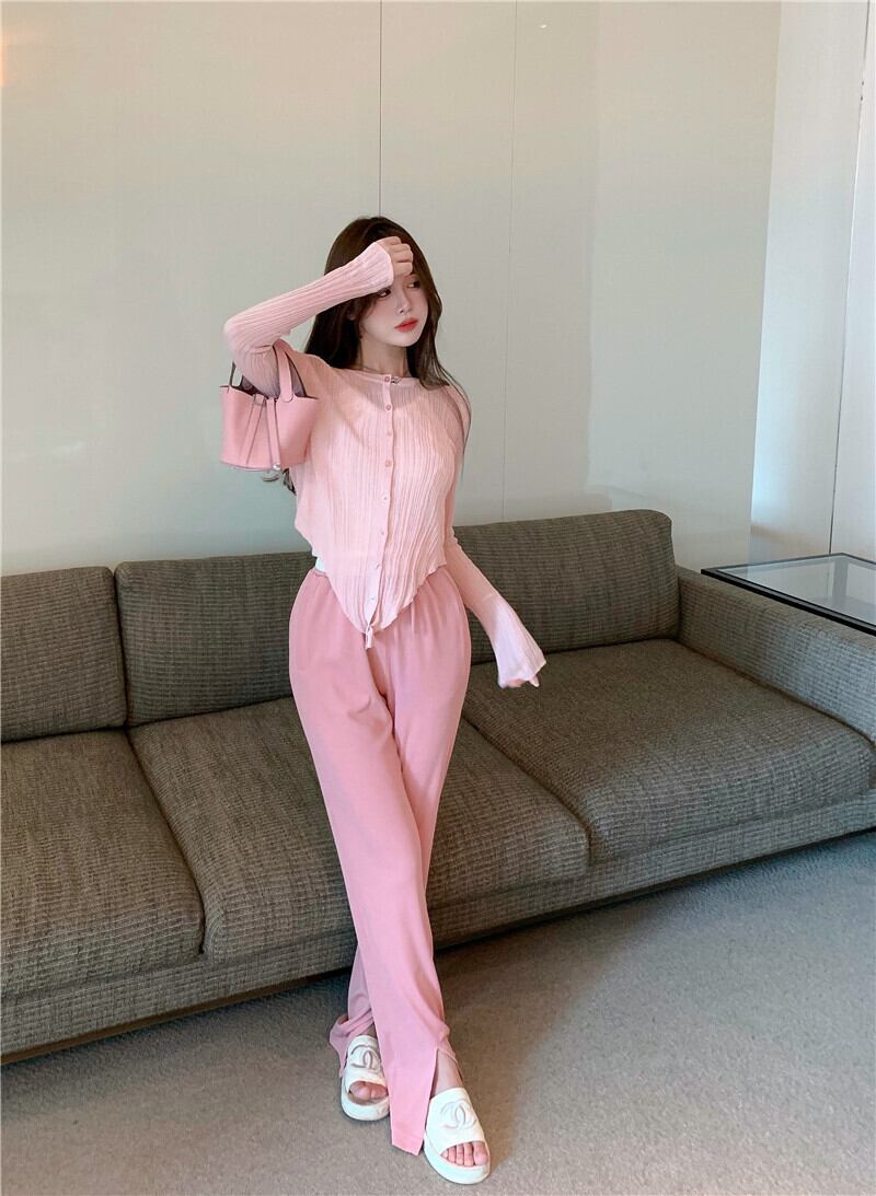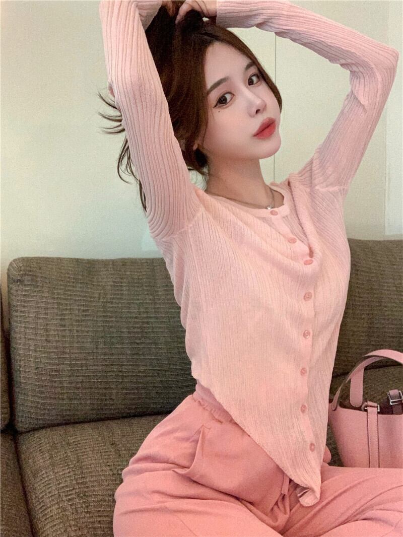 ニットカーディガンジャケット 薄手Vネックシャツ トップス ロング ガールズファッション25866229468