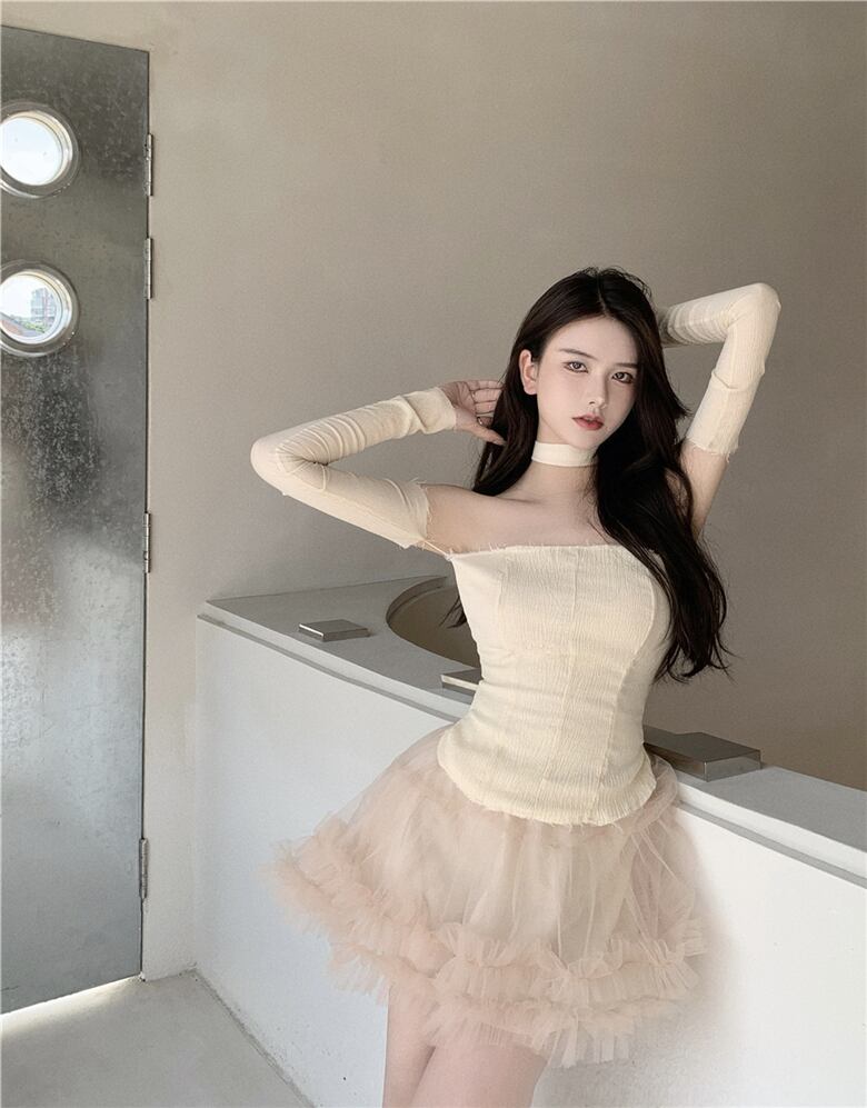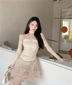 色:ベージュトップス(袖は取り外し可能),アプリコットスカート
