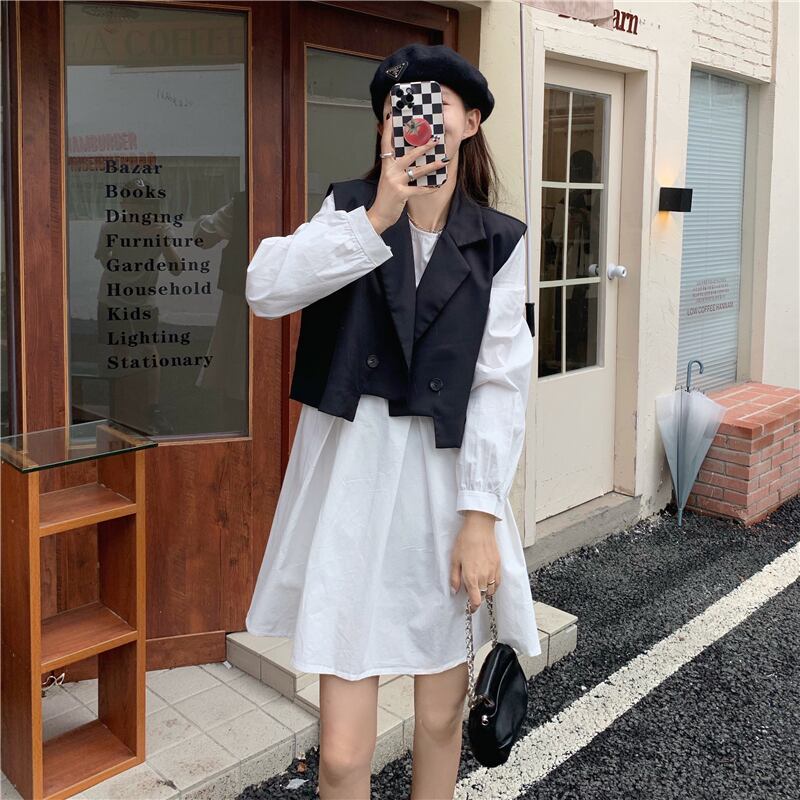 オータムスタンダードジャケット ルーズシャツ ドレス ロング レトロ 秋物 ガールズファッション26944288311