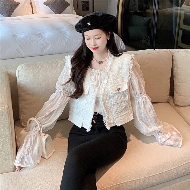 色:ブラックシフォンシャツ,白いシフォンシャツ,黒のベスト,白いベスト