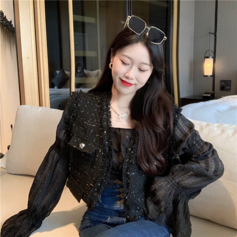ブラックジャケット オータムスタイル薄手スタンダードショート レトロ 秋物 ガールズファッション79197158311