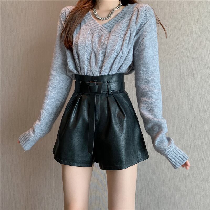 薄手カジュアルパンツ オータムレザーショーツ ストリート 秋物 ブルマー ガールズファッション52814698308