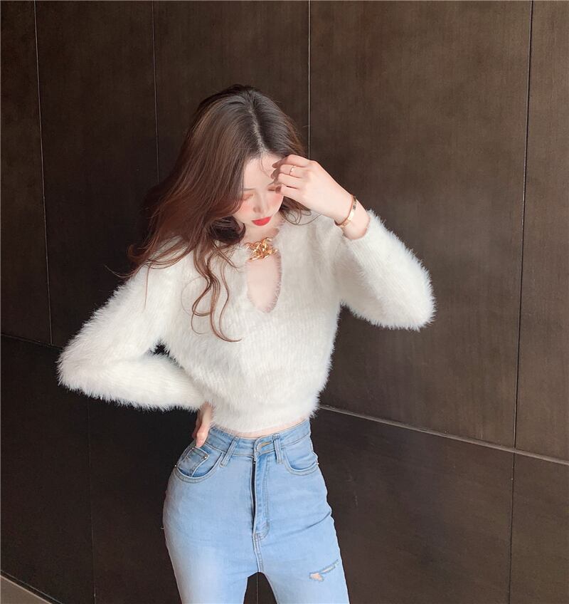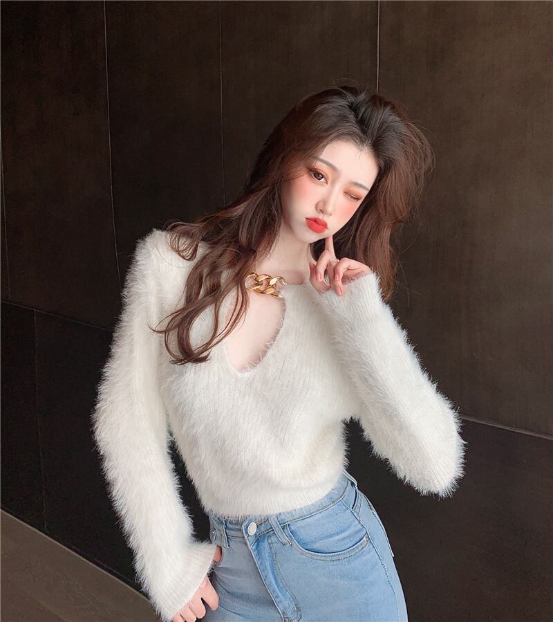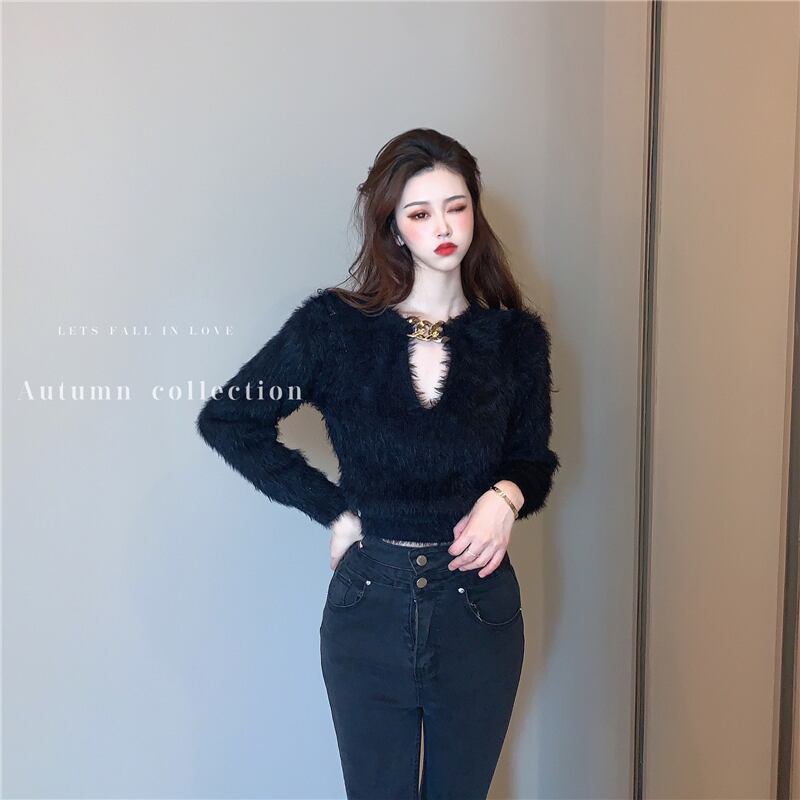 チェーン ショートブラウス オータムスタイルシャツ スタンダードセーター ロング レトロ 秋物 ガールズファッション71028926067