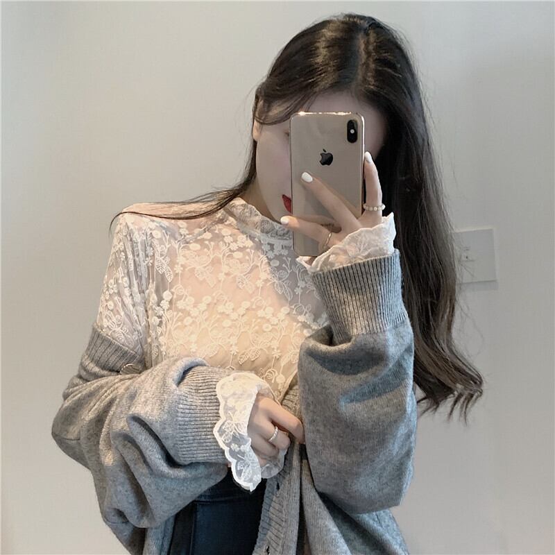 スタイルスリーブレースシャツ オータムウィンタースリムプルオーバー トップス ロング 秋物 冬物 ガールズファッション71862313958