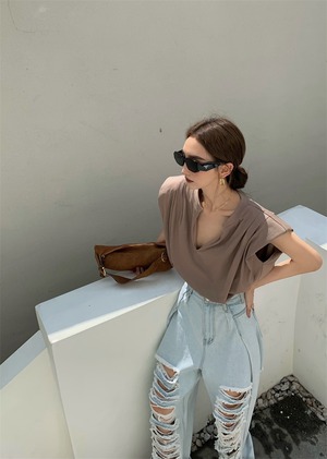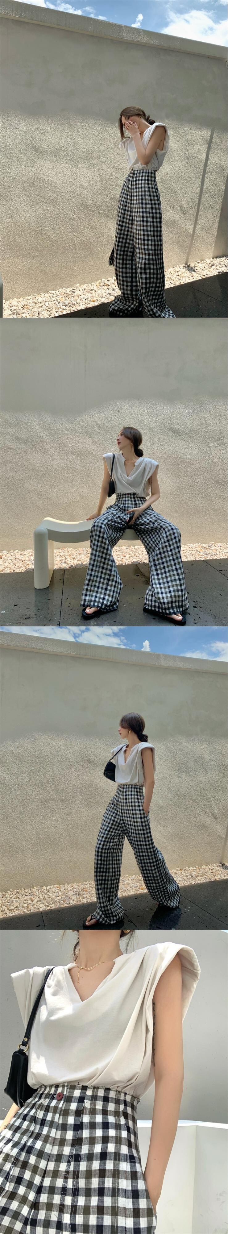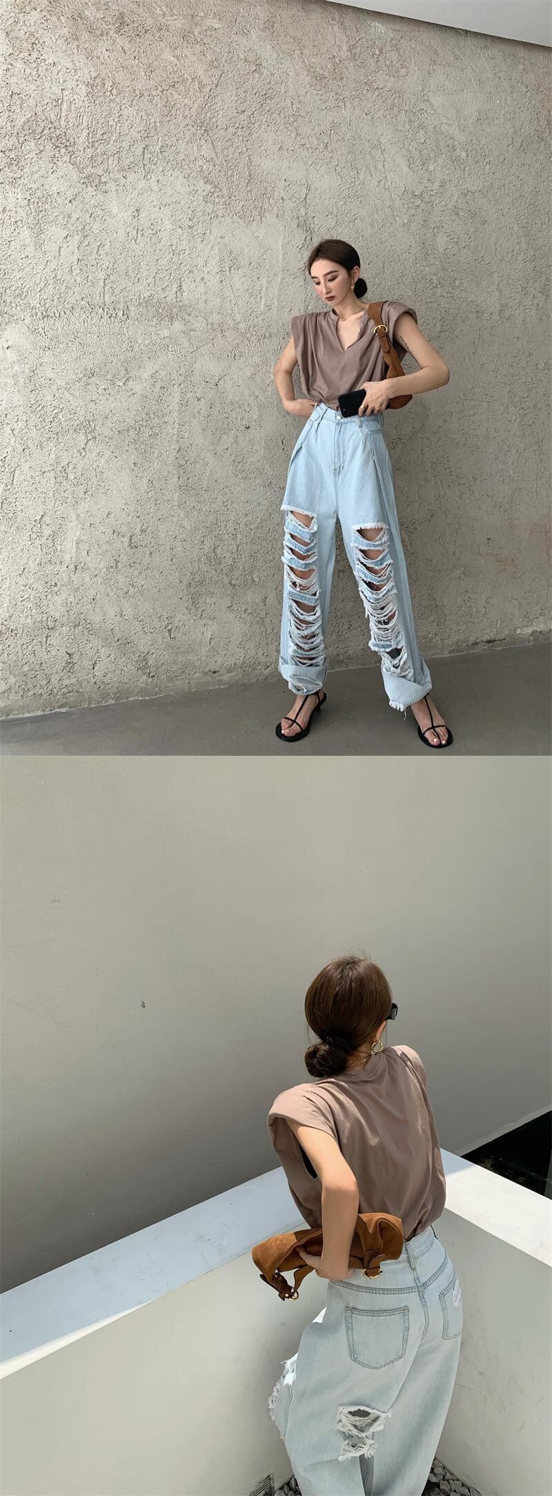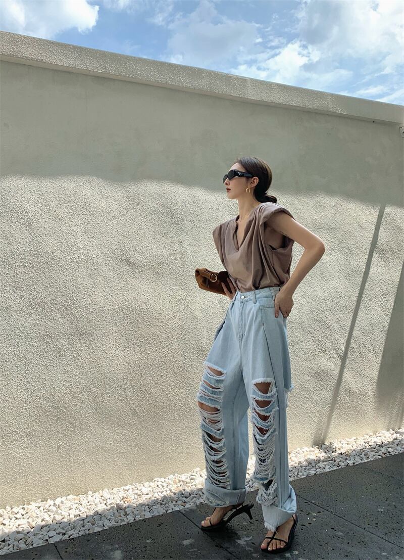 Tシャツ オータムVネックルーズスリーブソリッド カラーノースリーブトップス 秋物 ソリッドカラー ガールズファッション83777750633