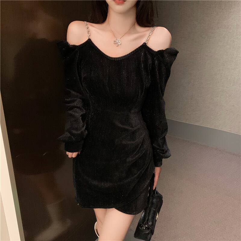 チェーン ストラップレスドレス オータムウェストスカート 秋物 ガールズファッション12522215018