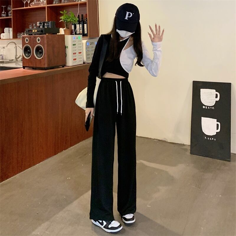 スプリングオータムカジュアルハイウェストウェストスリムパンツ ワイドレッグレディース 春物 秋物 ワイドパンツ ガールズファッション80172422665