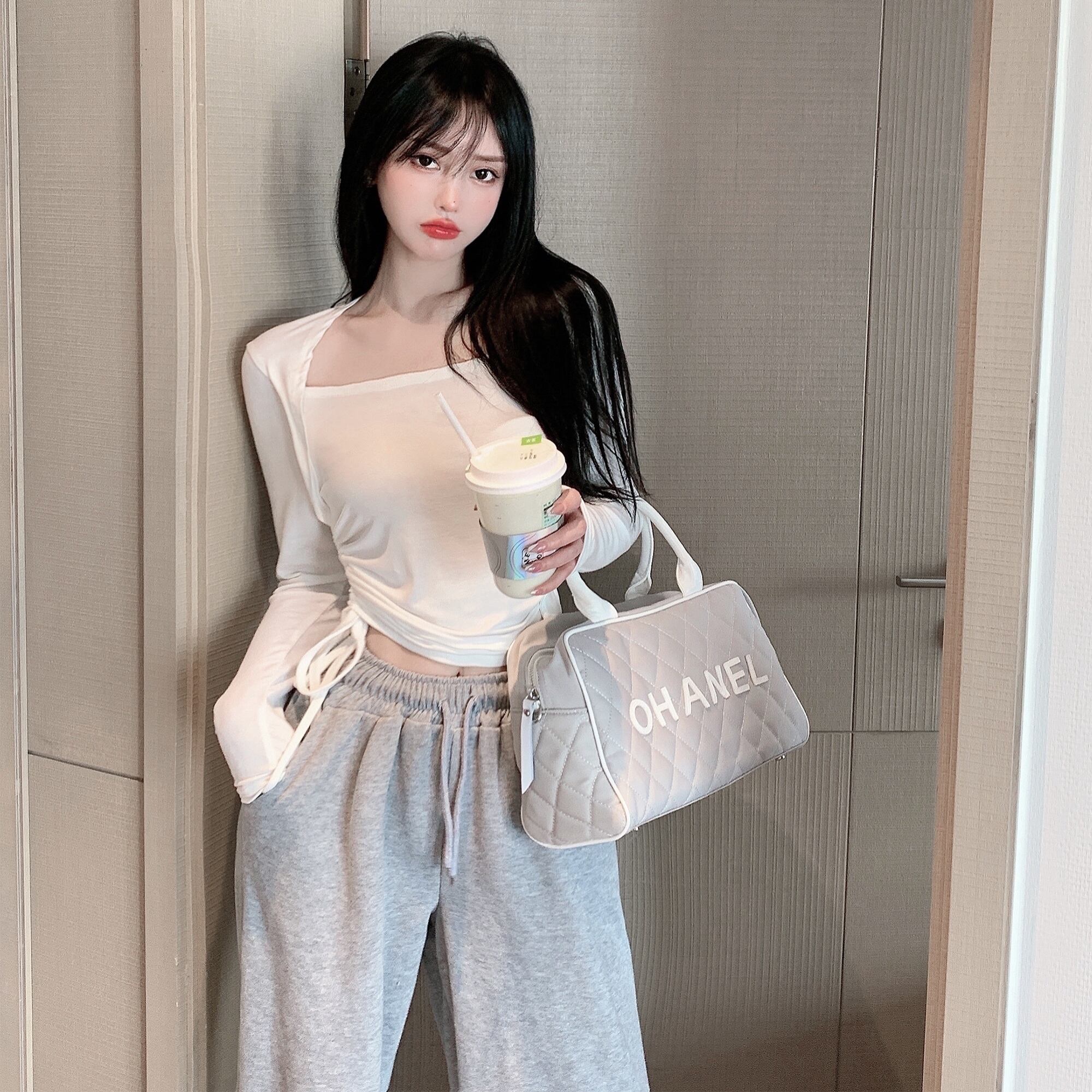 ギャザーTシャツ シャツ オータムスタイル薄手カラートップス ロング 秋物 スクウェア ガールズファッション88828732203