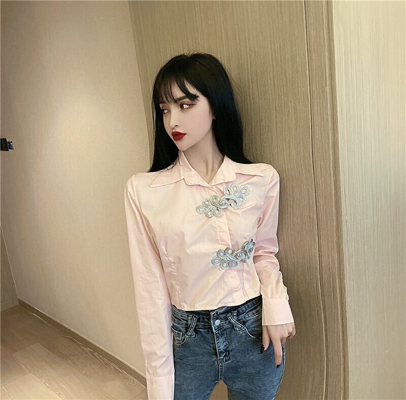 スタンダードブラウス オータムスリム薄手ショートシャツ ロング レトロ 秋物 ガールズファッション97319787271