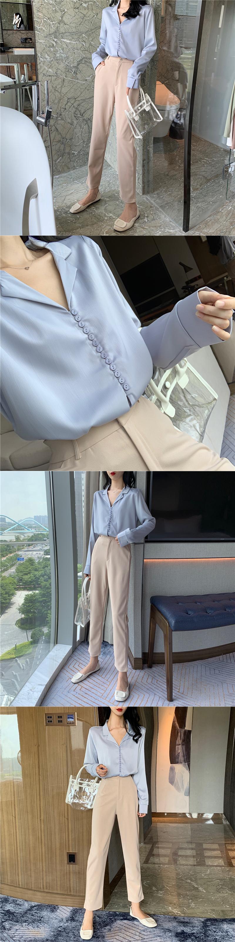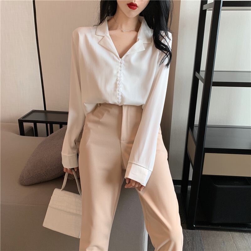 オータムスタイルカラールーズシャツ ハイウェストウェストカジュアルパンツ ロング 秋物 ガールズファッション67065459050