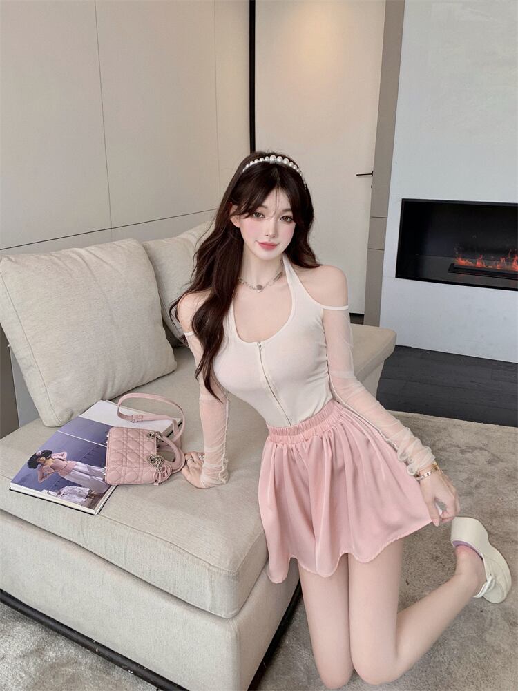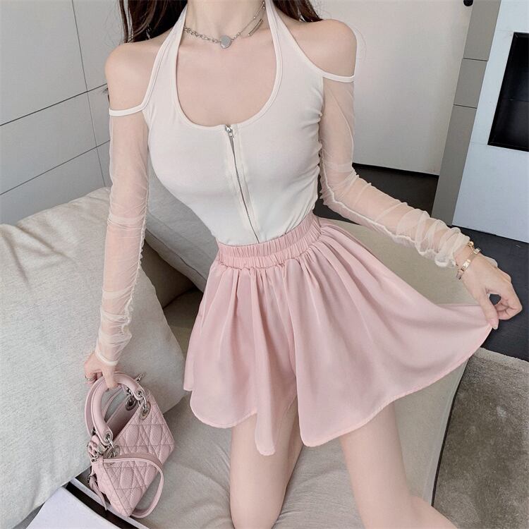 メッシュブラウス ハイウェストウェストスカート パンツ ストリート ピュア ステッチ ガールズファッション50281891208