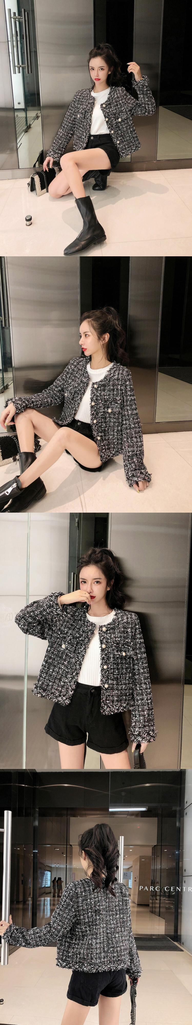 スタンダードショートツィードジャケット レディースオータムスタイルカーディガントップス レトロ 秋物 ガールズファッション37328725511