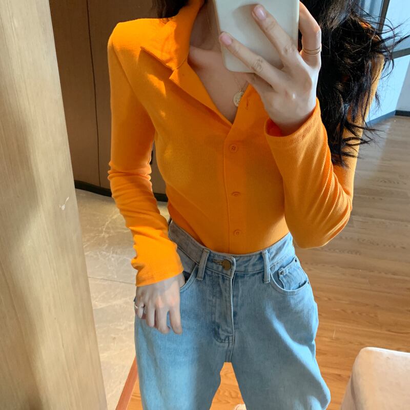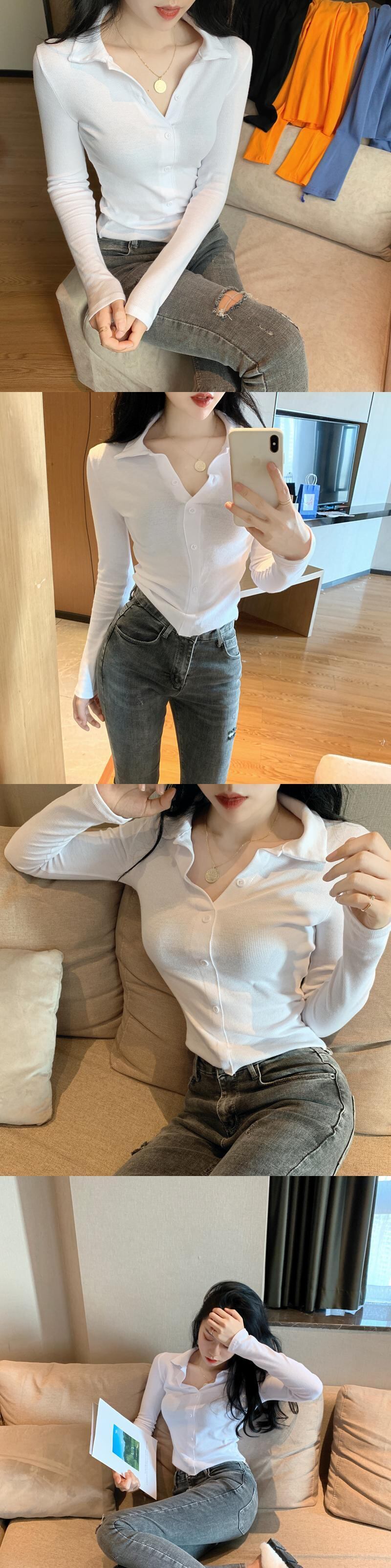 カラーニットシャツ オータムベーシックホワイトスリムトップス ロング 秋物 ガールズファッション32172833245