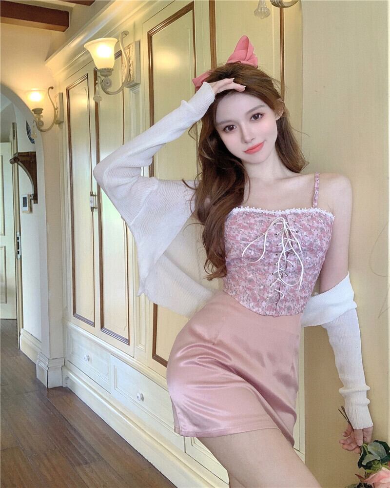 色:ピンクのサスペンダー,青いサスペンダー,白い肩,青いチョッキ