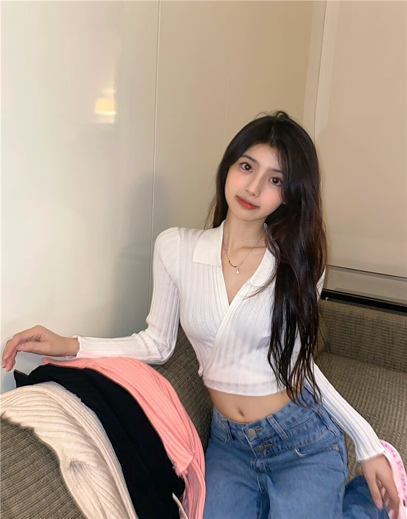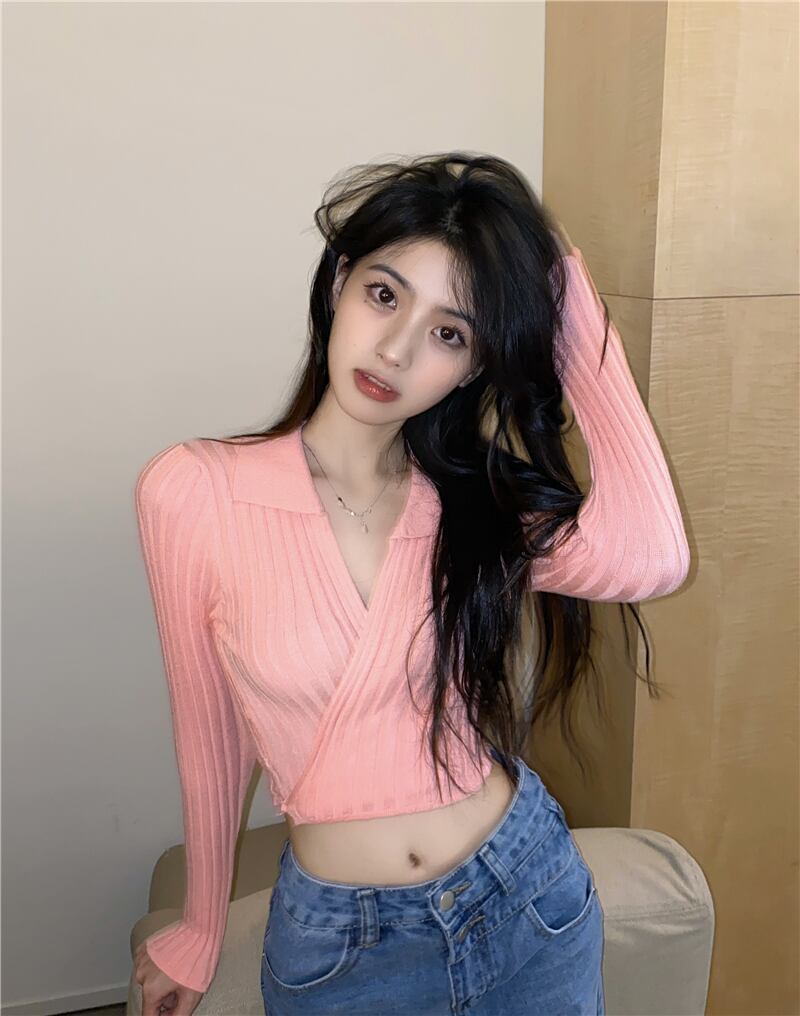 セーター オータムクロップドショートブラウス シャツ ロング 秋物 Vネック ガールズファッション94722640370
