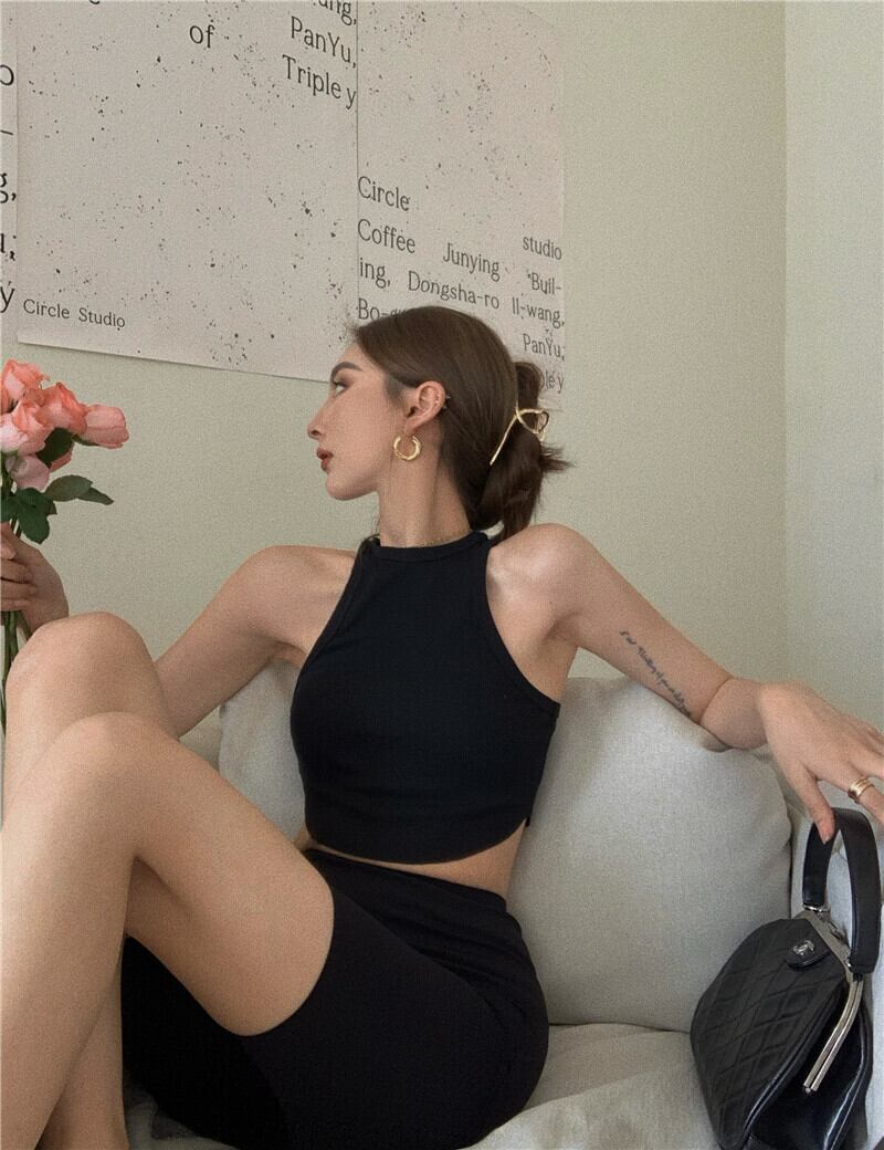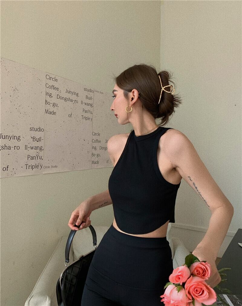 スリムショートバックトップス オータムスタイルノースリーブ 秋物 ガールズファッション49939083687