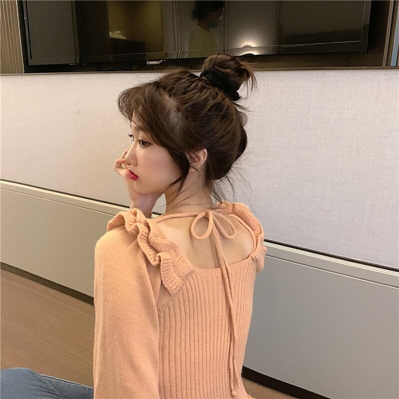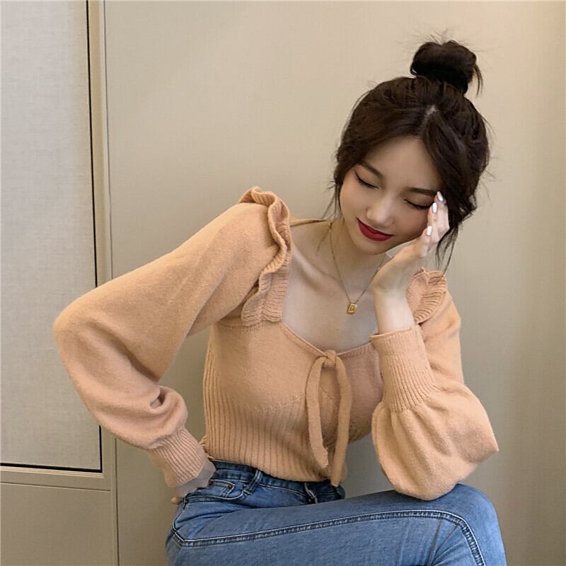 レースプルオーバー セーター オータムスタイルスリーブトップス レディース 秋物 スクウェア ガールズファッション55932499749