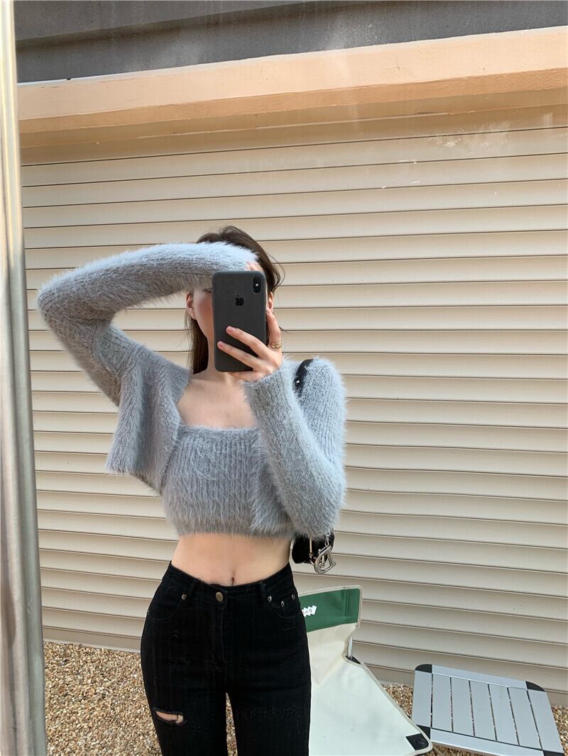 オータムソリッド カラートップス ショートセーター コート スカート 秋物 ソリッドカラー ガールズファッション92784862956