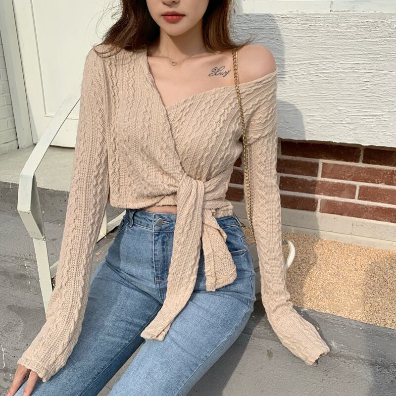 クロスVネックショートブラウス オータムセーター ロング 秋物 ガールズファッション63204629526