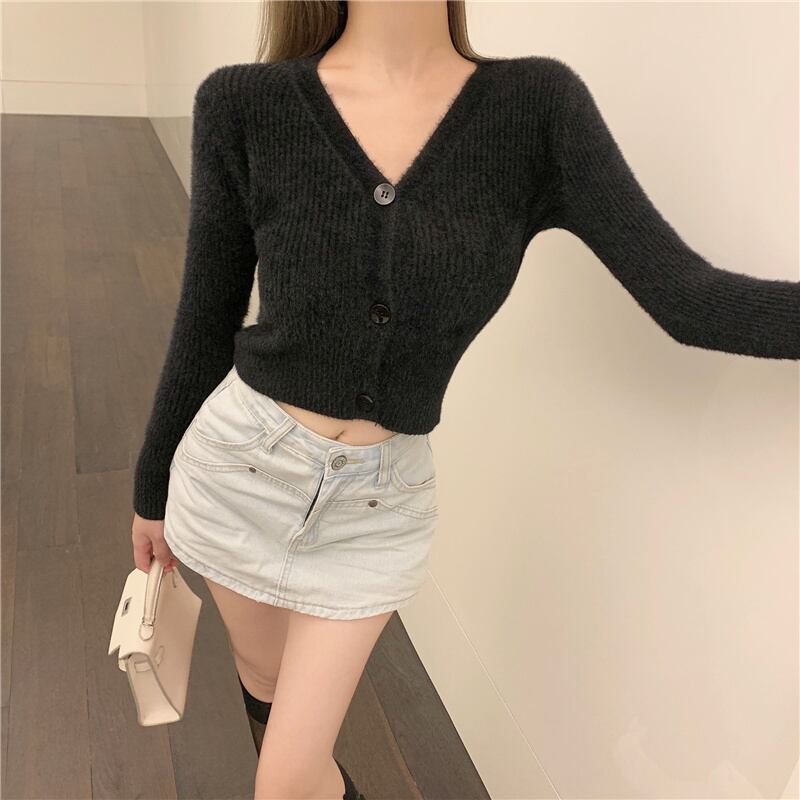 Vネックショートニットカーディガンジャケット オータムスタイルカジュアルトップス ストリート 秋物 ガールズファッション65206978651